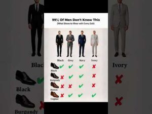 Suit & Shoe Color Matching Guide for Men | What Shoes to Wear with Every Suit 👞👔 Not sure which shoes go best with your suit? This men’s suit and shoe color guide makes it simple! 💼 👕 Quick Matching Tips: Black Suit: Black shoes only (timeless & formal) Grey Suit: Black, burgundy, or cognac…